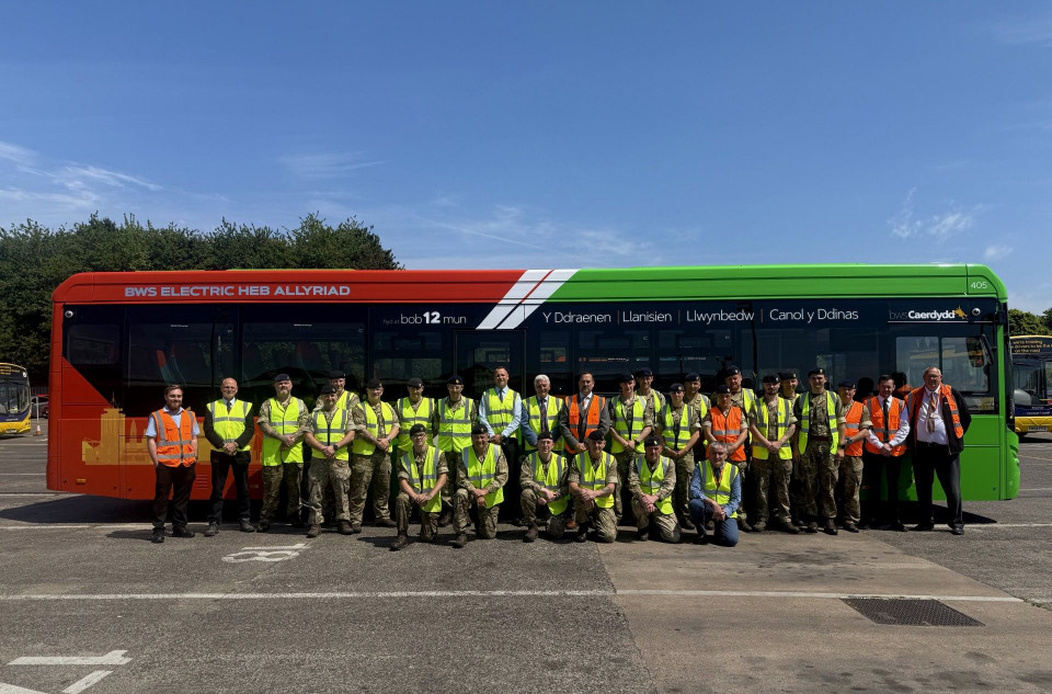 Cardiff Bus MD Mr Craig Hampton-Stone and CO 157 Regt Lt Col Tom Shaw