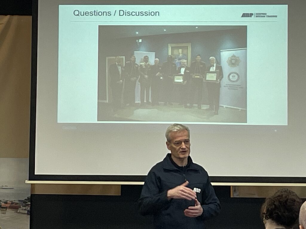This followed with a visit to the Port of Southampton. Tom Dynes, General Manager ABP gave us a fascinating insight into Port Operations, before a tour of the Port. The scope and scale of operations at the Port was hard to comprehend, predominately import/export volume and cruise ship activity, and coordinated logistics on a massive scale.
